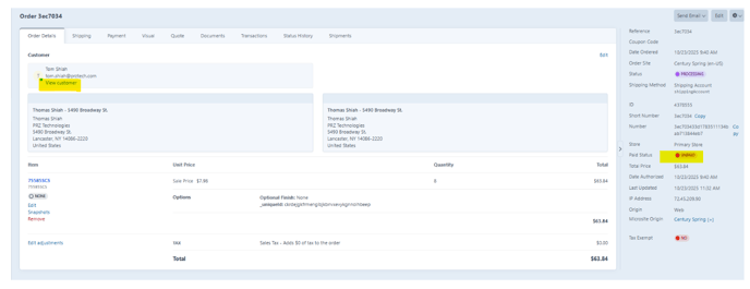 2. If the order is unpaid (invoicing), ensure the correct CID is selected.