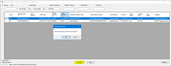 When a customer places an order on the website, the location who owns that part will receive an email notification that a new order has been placed for their part. To import the order from the website into Visual, please follow these instructions